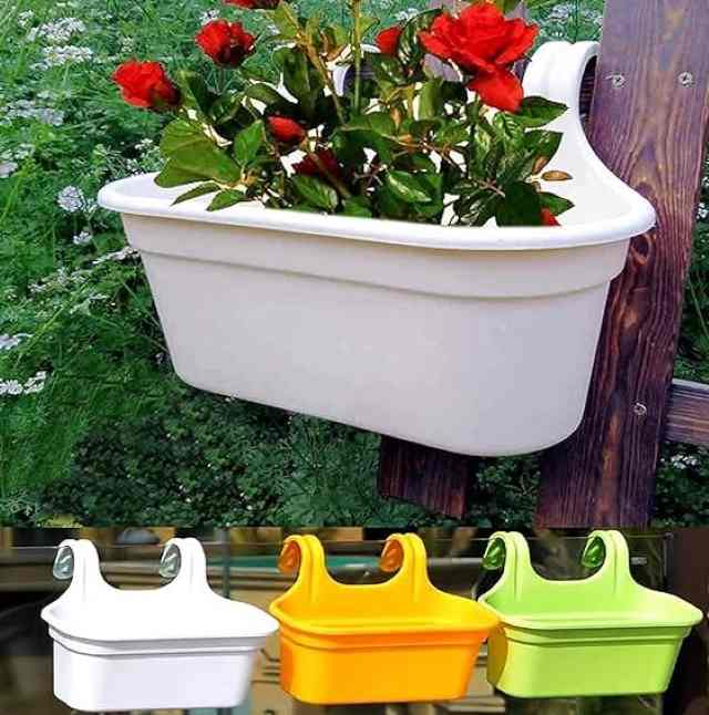 Double Hook Railing Hanging Plastic Pot – Pack of 3 (any color)
